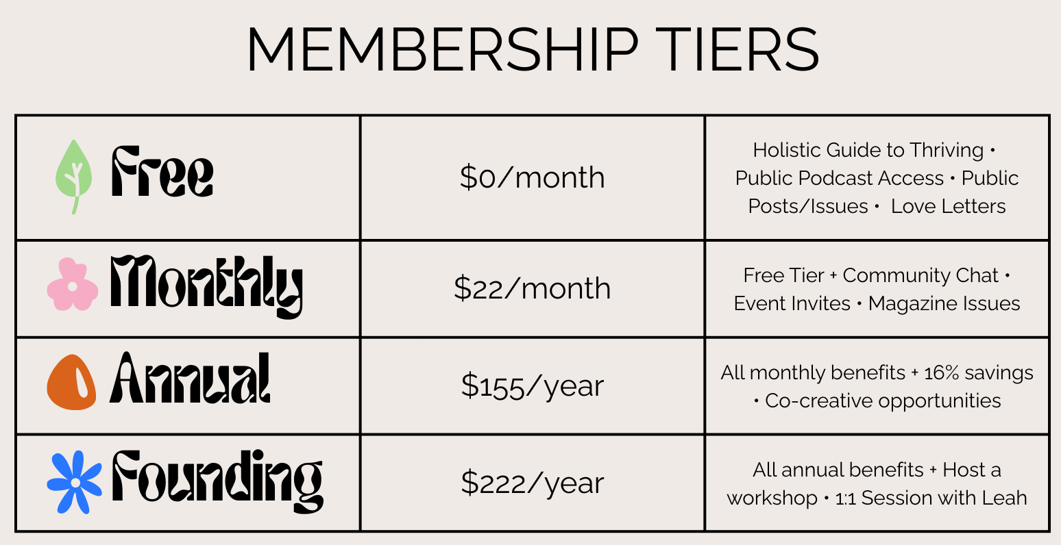 If you’ve been curious about our events, or want to deepen into the sanctuary we’re building together, you’re warmly invited to upgrade your membership—both to receive all future invitations and to help sustain this gentle, soul-centered community.