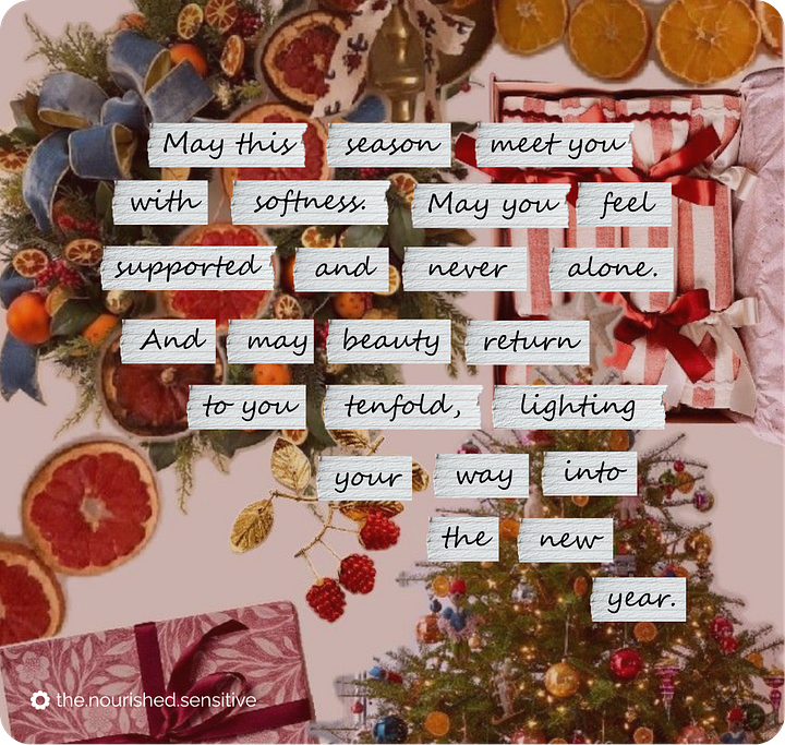 This is true even when we look forward to this time of year, because our bodies often tell a different story. Many people, especially highly sensitive and neurodivergent folks, feel the pressure in their nervous systems first: tension in the shoulders, shallow breathing, a sense of being “on” even when we want to rest.