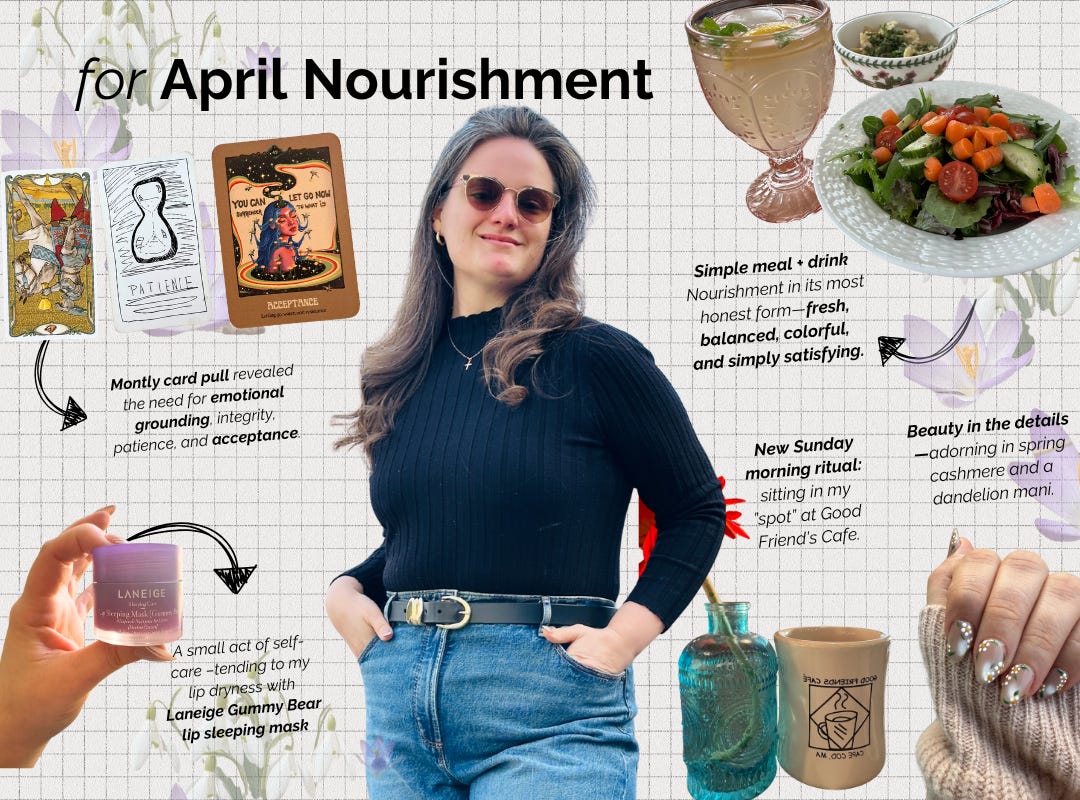 Thank you so much for being here, for reading this month’s love letter, and for helping keep the nourishment of this community alive. Wishing you warmth, love, and presence this April.