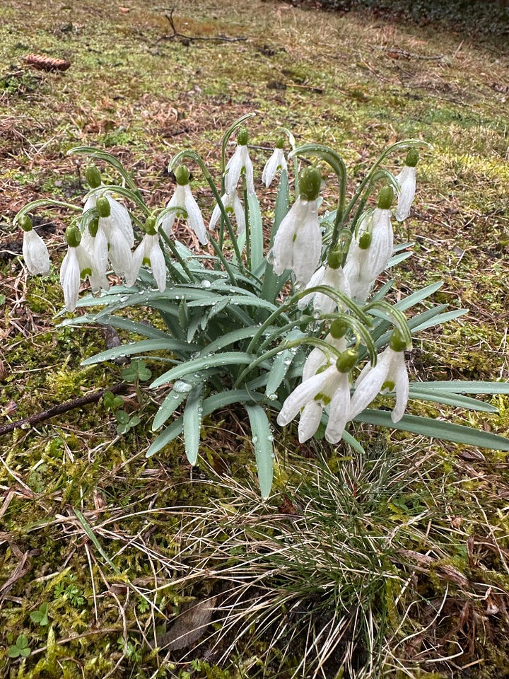 The earliest tells of spring on Cape Cod are emerging in the form of snowdrop flower clusters in the backyard garden.