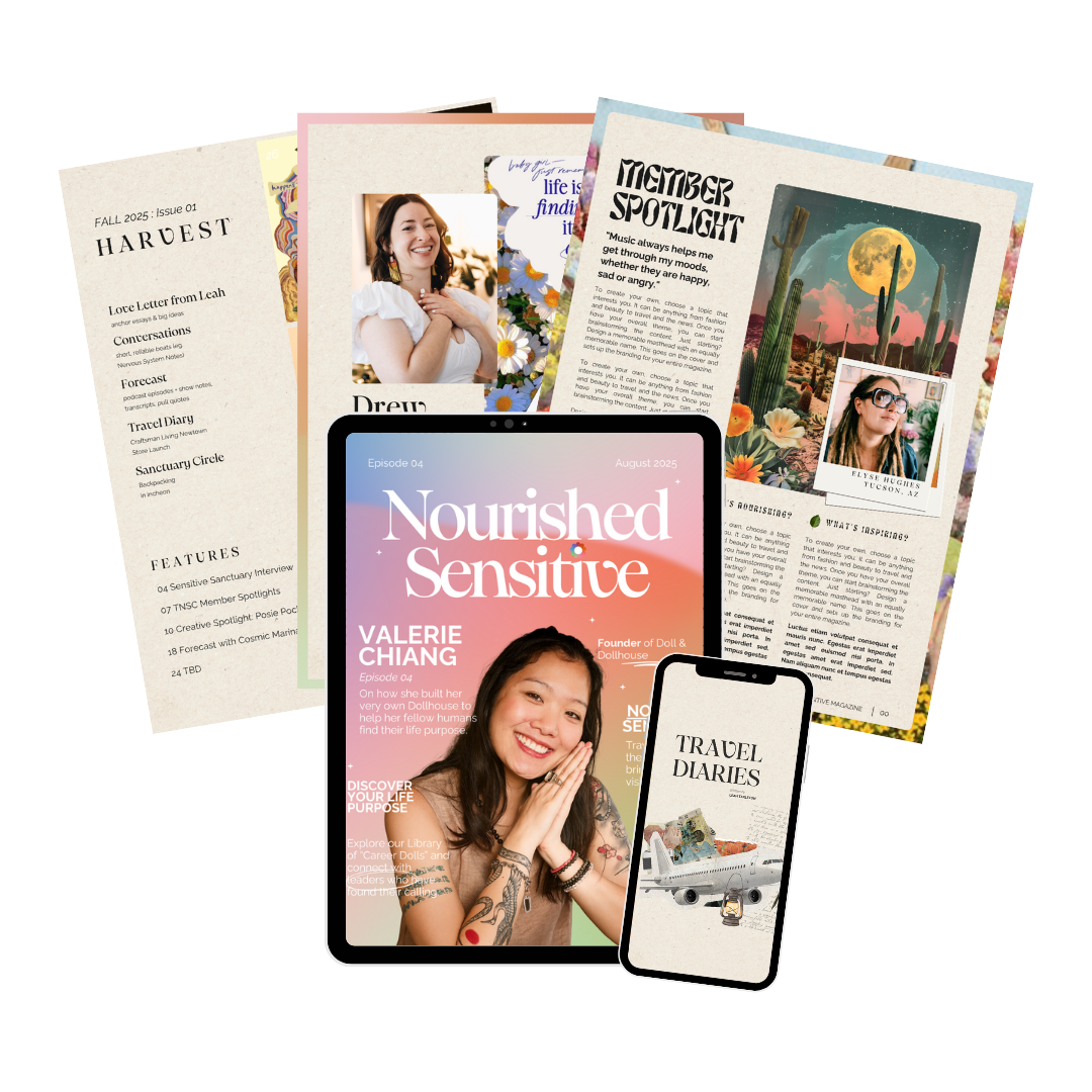 When you subscribe to the Nourished Sensitive Collective and TNS Magazine, you’ll also receive instant access to our library of replays, meditations, circle activities, and journal prompts from previous circles as well as inclusive invitations to be part of the live Sensitive Sanctuary Circle experience.
