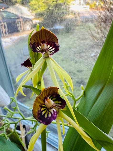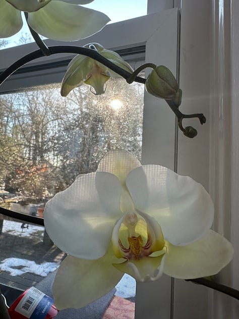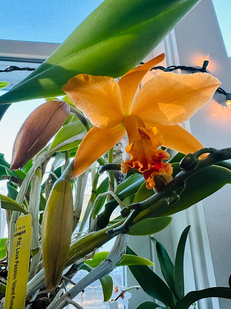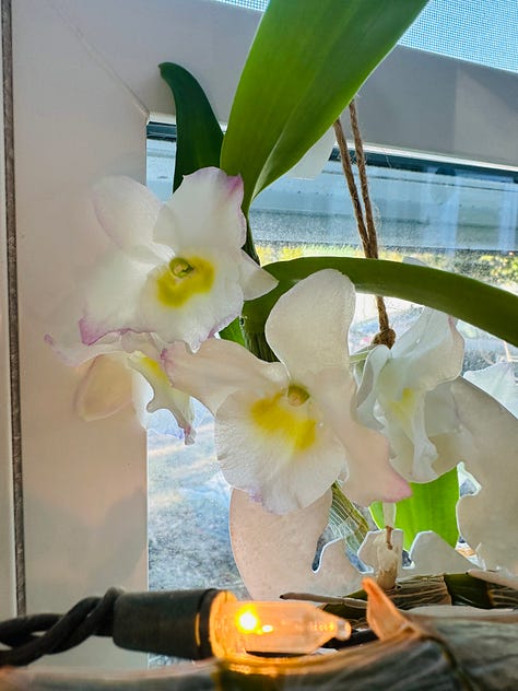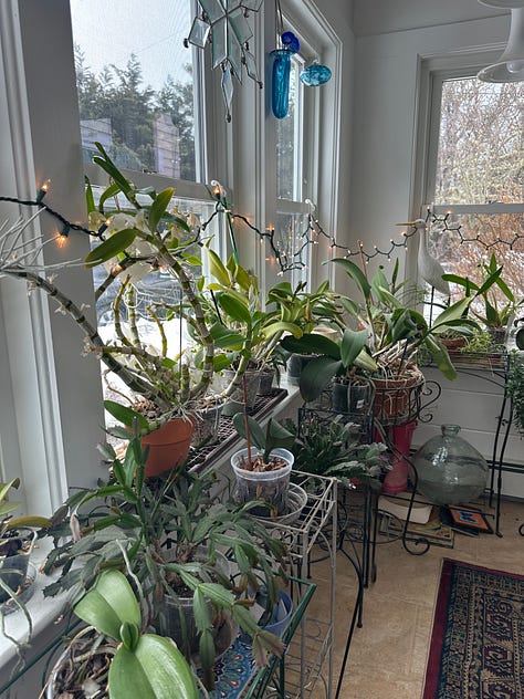 Right now I’m sitting in the front room writing this love letter. It’s filled with blooming orchids of every color and variety.